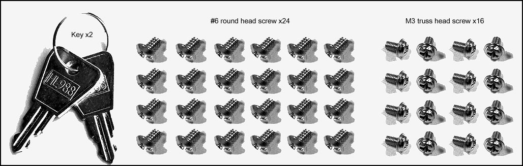 #6 round head screw x24, M3 truss head screw x16, key x2